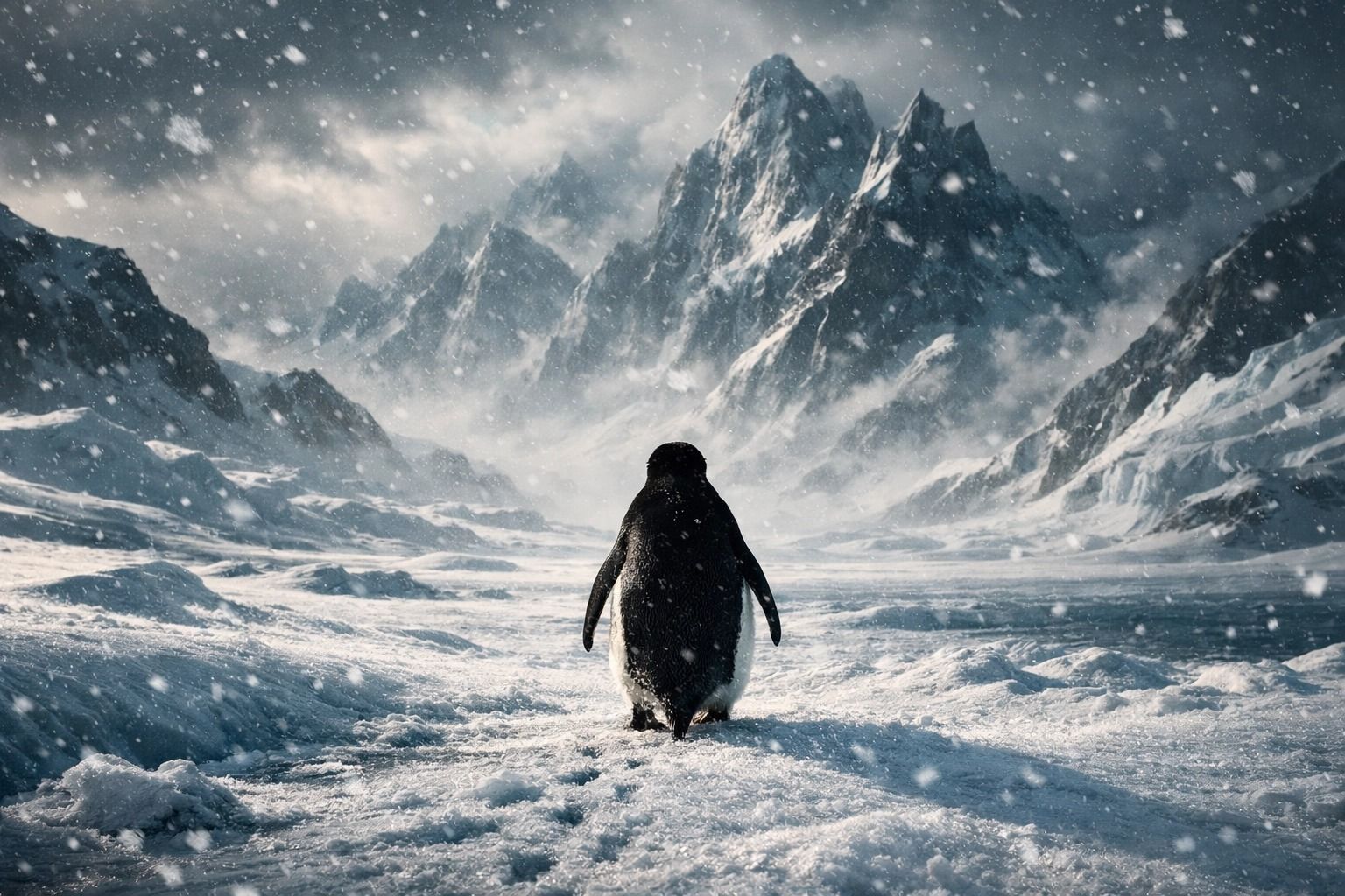 A imagem dialoga com o conceito do absurdo de Albert Camus: o confronto entre a busca humana por sentido e o silêncio do universo. Como um Sísifo moderno, o pinguim empurra sua escolha contra a lógica natural, encontrando liberdade justamente no ato de desafiar o destino. Essa marcha solitária levanta uma questão inevitável: qual preço estamos dispostos a pagar pela autenticidade?